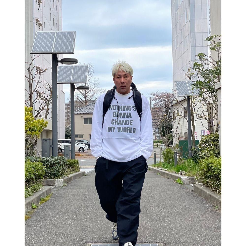 Tシャツのプリントをぼかしながら見せるのも洒落ています。