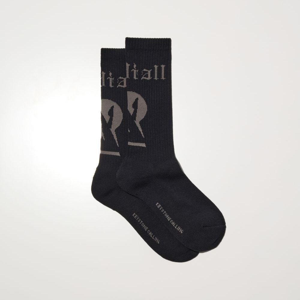 ジャガードでふくらはぎ側に「キーホール」、履き口裏に「WWW.RADIALL.NET」、足底に「KEYSTONE CALLING」が入ります。